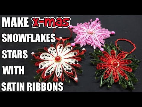 Ornament Made Of Ribbon }}- In this video, I make these beautiful Christmas Snowflakes or Stars with 1/4th inch size Satin Ribbons using Quilling technique. Make one for yourself for this ...