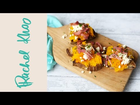 Rachel Khoo's Smashed Pumpkin Bruschetta - Pumpkin Bruschetta Recipe - Rachel Khoo shares her delicious bruschetta using roasted pumpkin, feta cheese and bacon. Smashed roasted pumpkin bruschetta Makes 4 Preparation time: ...