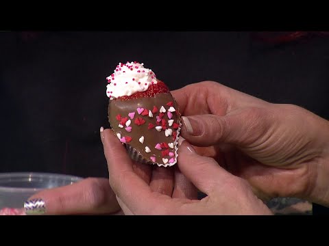 Cheesecake Stuffed Strawberries With Chocolate }}- Mel Wurm, Owner of Mel's Sweet Shop, demonstrates how easy it is to stuff fresh strawberries with cheesecake filling.