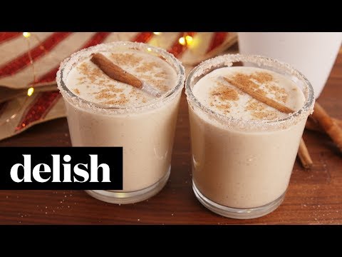 Rumchata Eggnog | Delish - Rumchata And Eggnog - Get the full recipe from Delish: http://www.delish.com/cooking/recipe-ideas/recipes/a57053/rumchata-egg-nog-recipe/ INGREDIENTS CINNAMON-SUGAR RIM ...